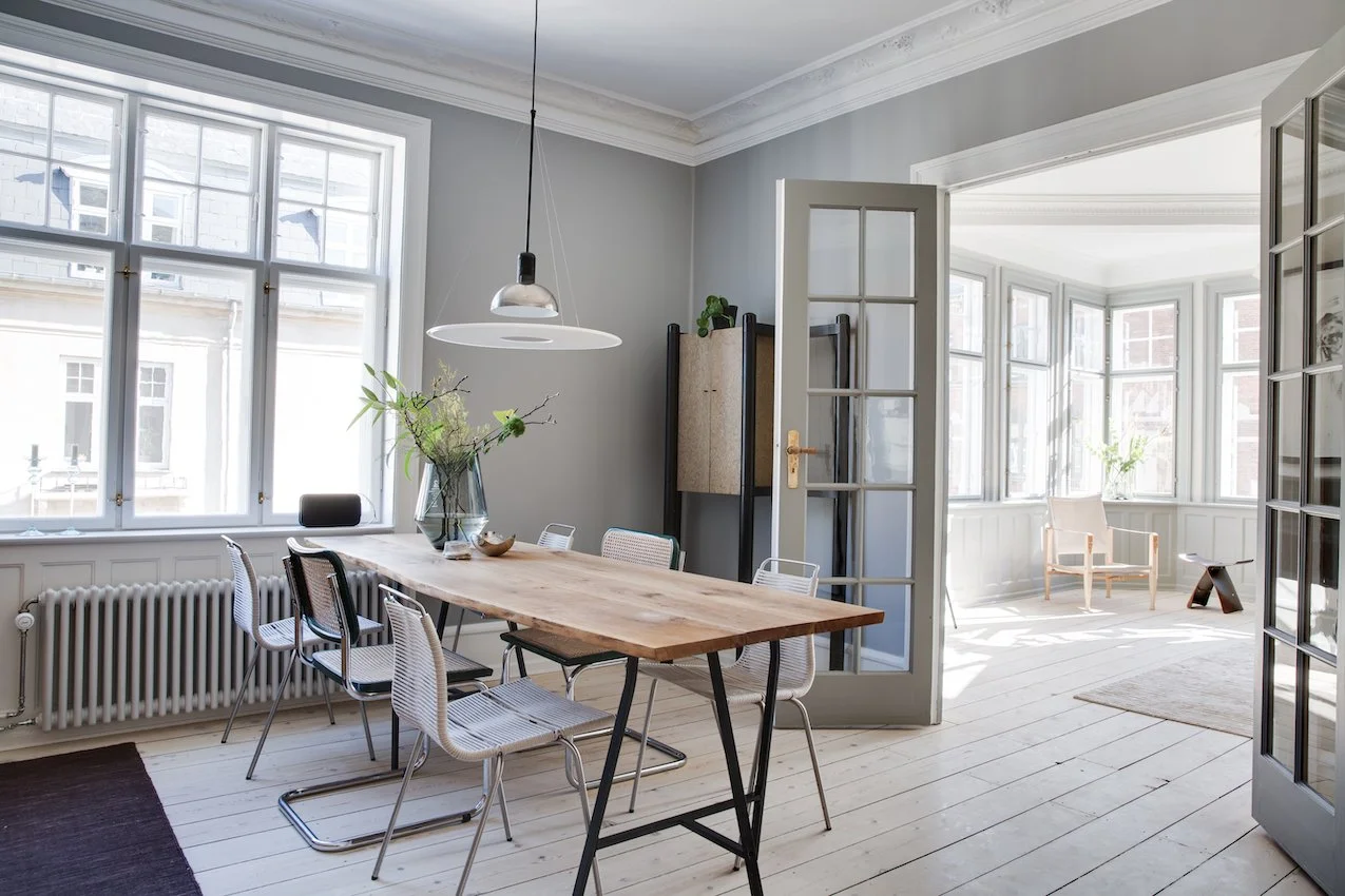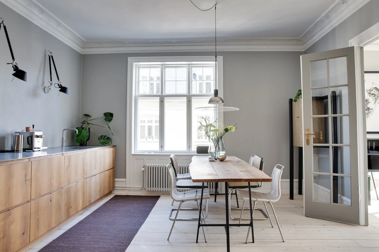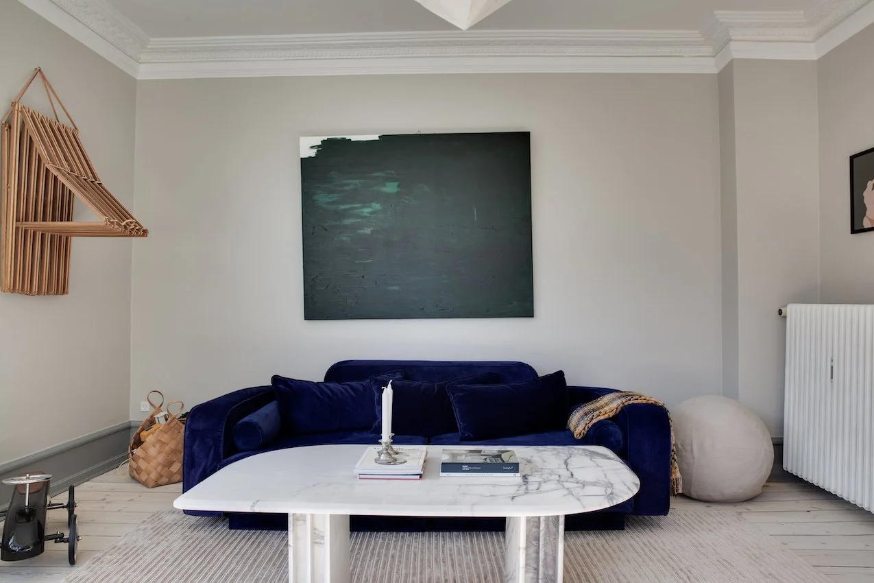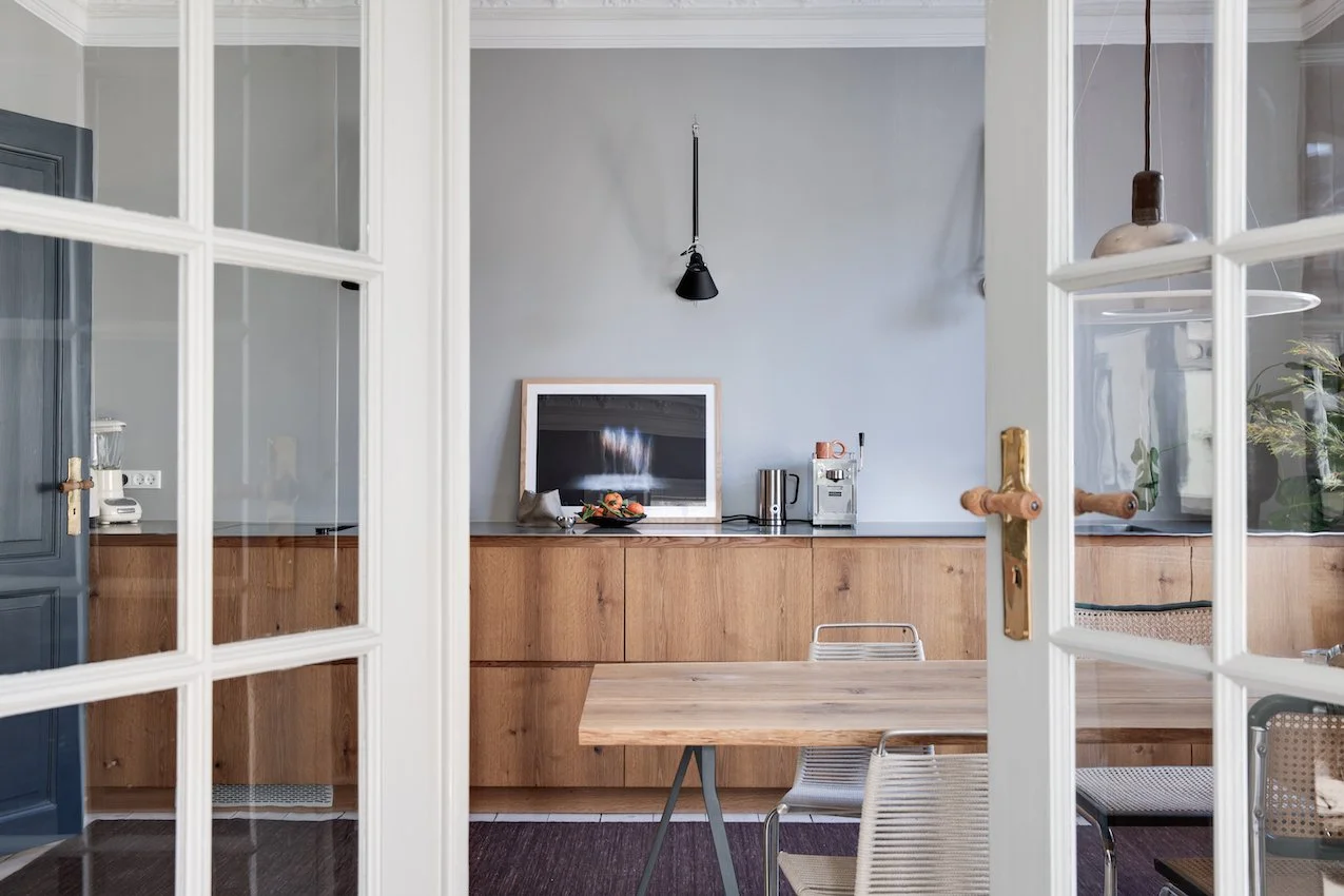 I en klassisk Københavner-ejendom fra 1907 på en af Indre Østerbros mest attraktive gader, ligger denne fashionable lejlighed. Den blå entre er det første der møder dit øje og det første bevis på den charmerende elegance der gennemsyrer lejligheden.