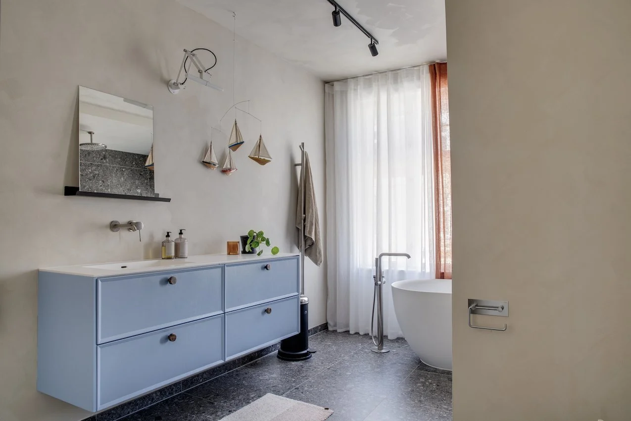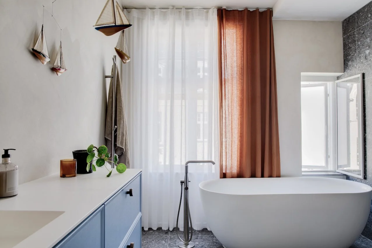 Det er en sand fryd for øjet at træde indenfor i dette kreative og gennemførte hjem. Her bor du midt i Østerbros lokale byliv, hvor du finder de bedste designbutikker og restauranter. Søerne ligger også lige rundt om hjørnet. Hvis du vil rundt i København, kan du hoppe på Metroen ved Trianglen eller på Østerport Station.
