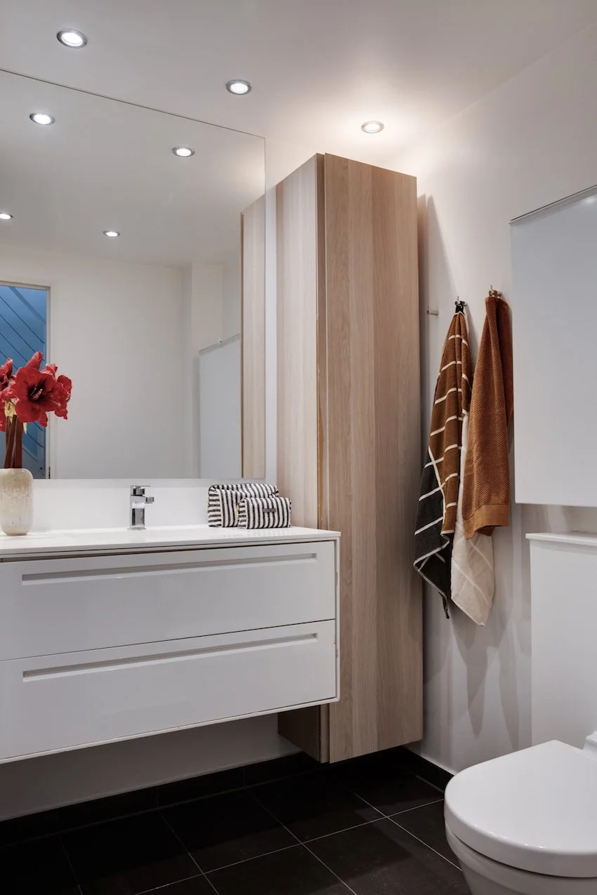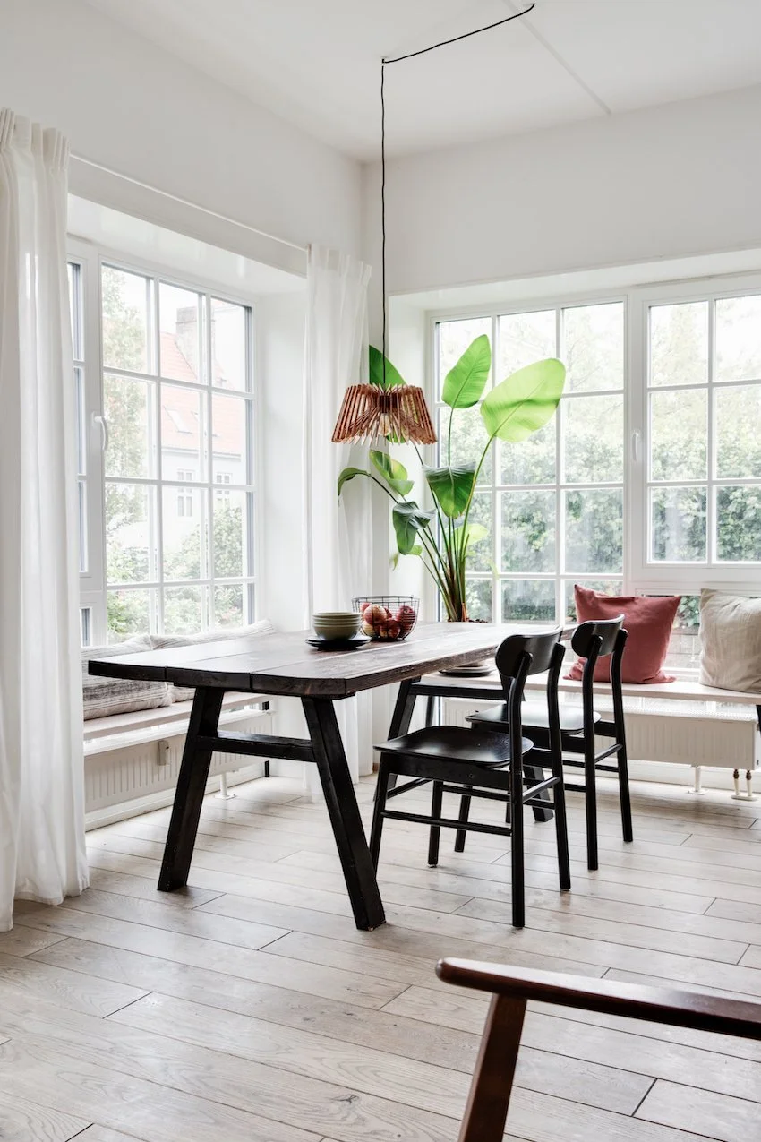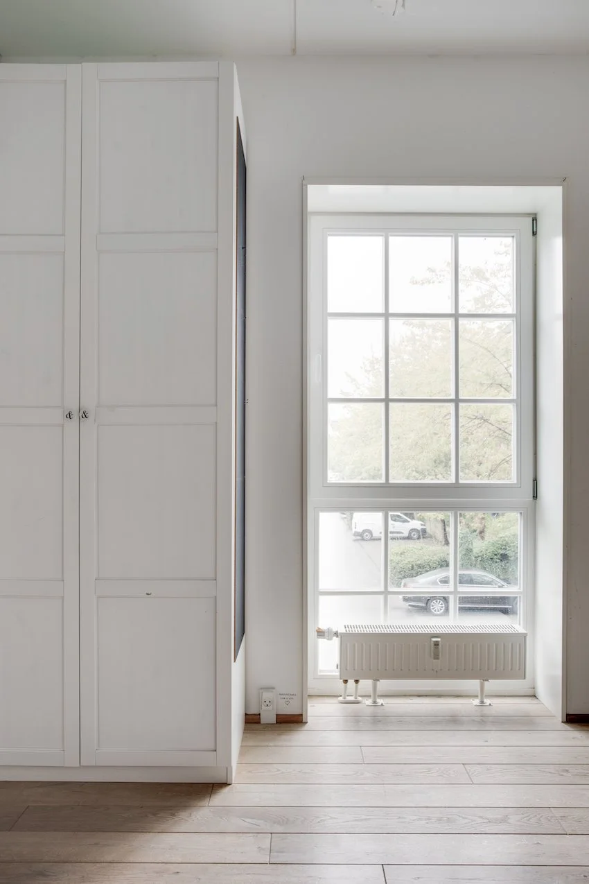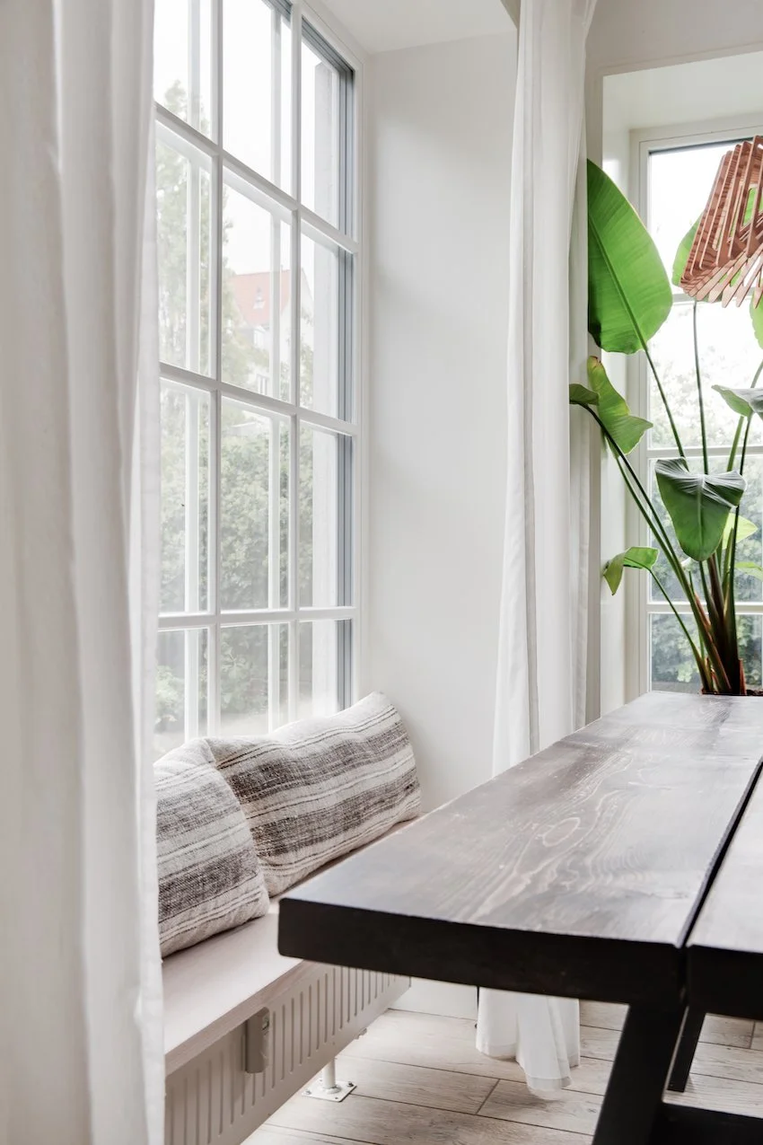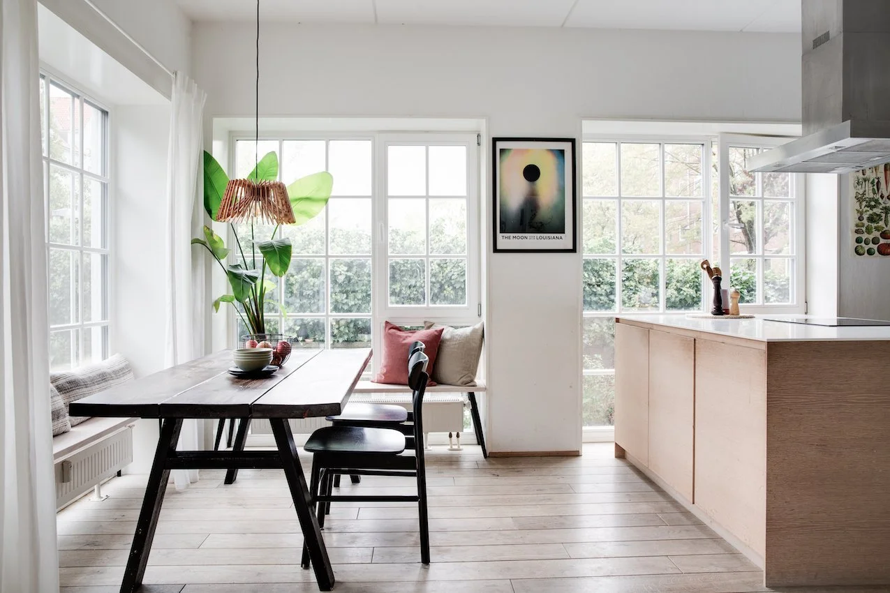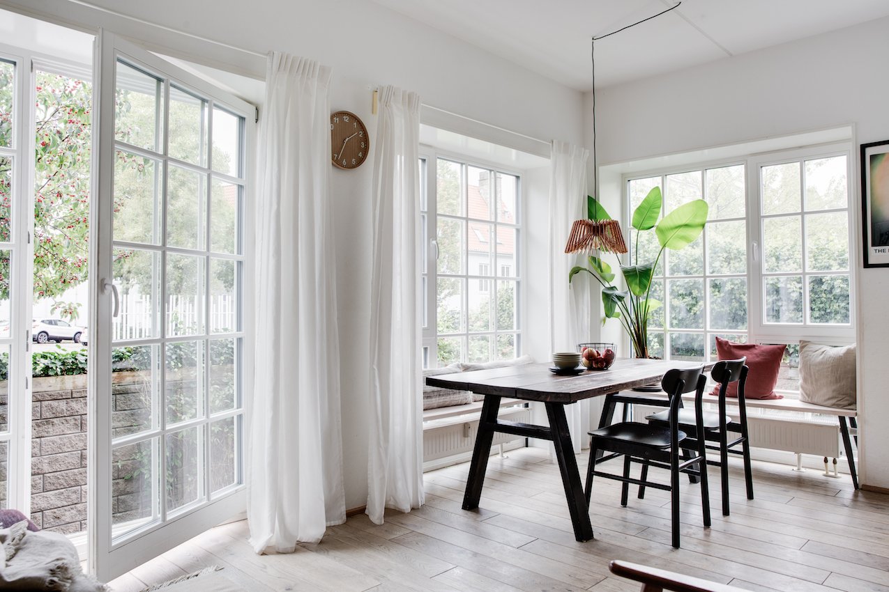 Det er et moderne og funktionelt hjem med udtryksfulde detaljer, og geometriske linjer. De 104 kvadratmeter er intelligent udnyttet og smagfuldt indrettet med materialer som stål, glas, beton og træ. Entrédøren åbner op til et indbydende køkken / alrum og stue i ét, lejlighedens hjerte. Køkkenet fra Køkkensnedkeren, emmer af kvalitet og tilføjer en særlig skandinavisk varme. Fra stuen er der direkte udgang til lejlighedens private og hyggelige gårdhave.