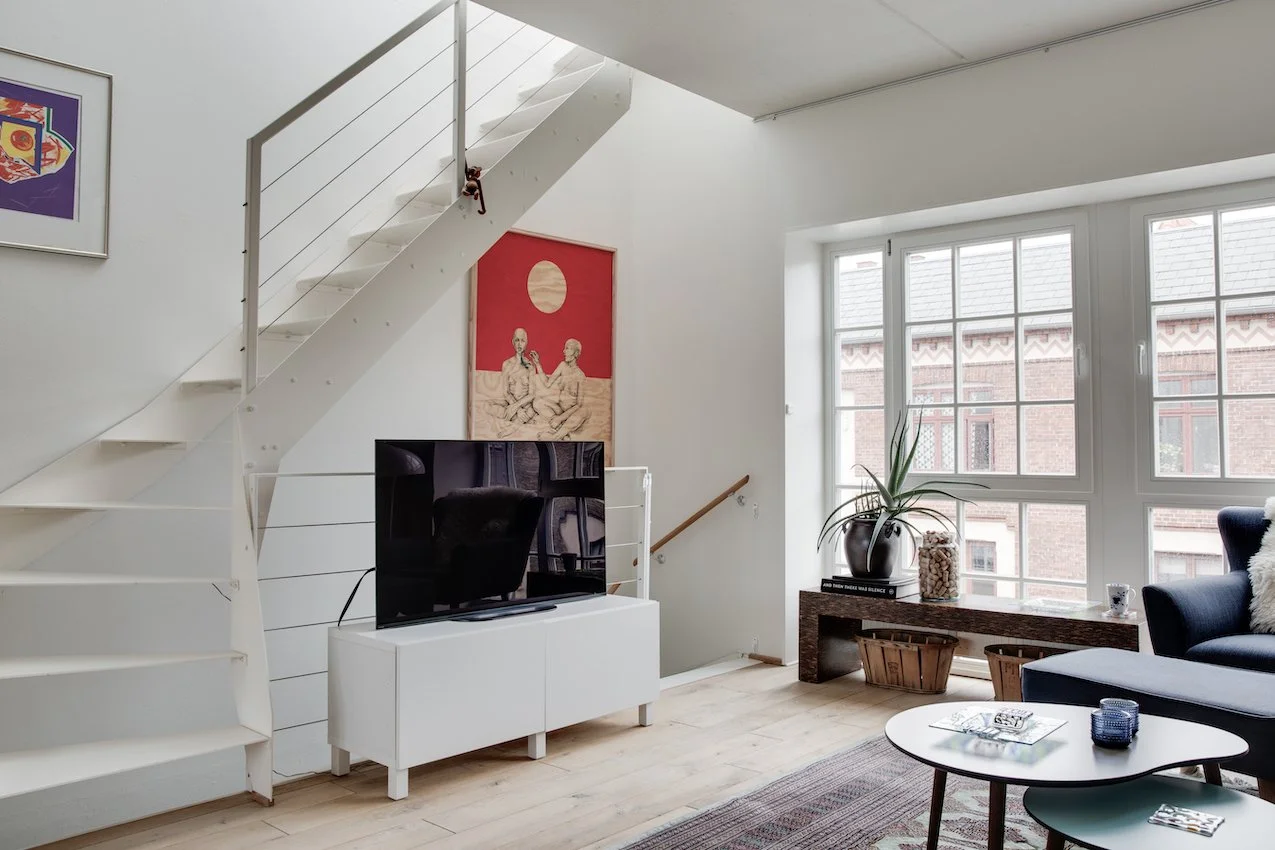 Velkommen indenfor til denne unikke to-etagers lejlighed i Factory House på Amager. Lejligheden udstråler ægte industriel design med store sprossevinduer, åben planløsning, svævende trappe, lift og masser af karakter i urban New Yorker-stil.