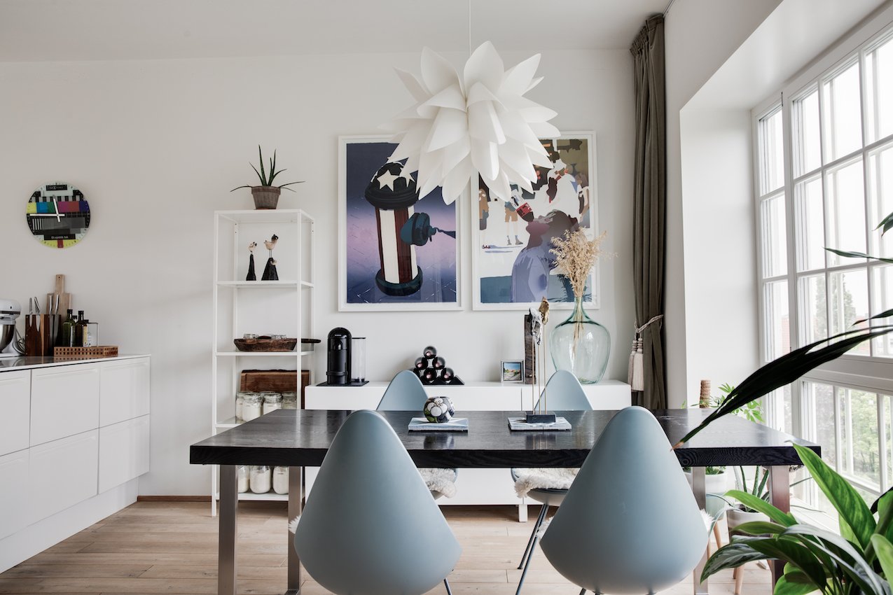 Fra hoveddøren kommer du direkte ind til et lyst køkken/alrum og stue i ét. Køkkenet fra Køkkensnedkeren, emmer af kvalitet og sætter standarden for denne stilrene lejlighed. Det samme gælder både badeværelset på øverste etage, og toilettet på underetagen, som ligeledes er udført i flotte tidsløse materialer. En hvid ståltrappe i industriel stil, tager dig både op til tagterrassen, og ned til underetagen, hvor tre hyggelige soveværelser venter.