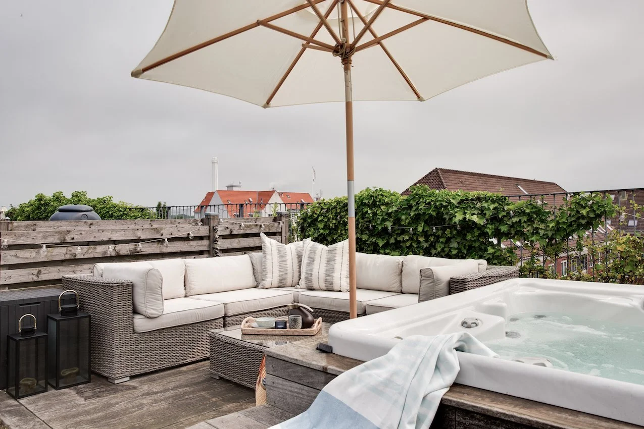Factory House ligger på den blinde sidevej Halgreensgade, mellem Holmbladsgade og Prags Boulevard. Den tidligere fabriksbygning er en del af et kreativt boligprojekt der stod klart i 2014. Hver lejlighed er unik, og har sin egen særegne karakter. Denne lejlighed imponerer med sine 121 kvm der er fordelt på to etager, samt sin misundelsesværdige og private tagterrasse med jacuzzi og mægtige udsigt over Københavns hustage.
