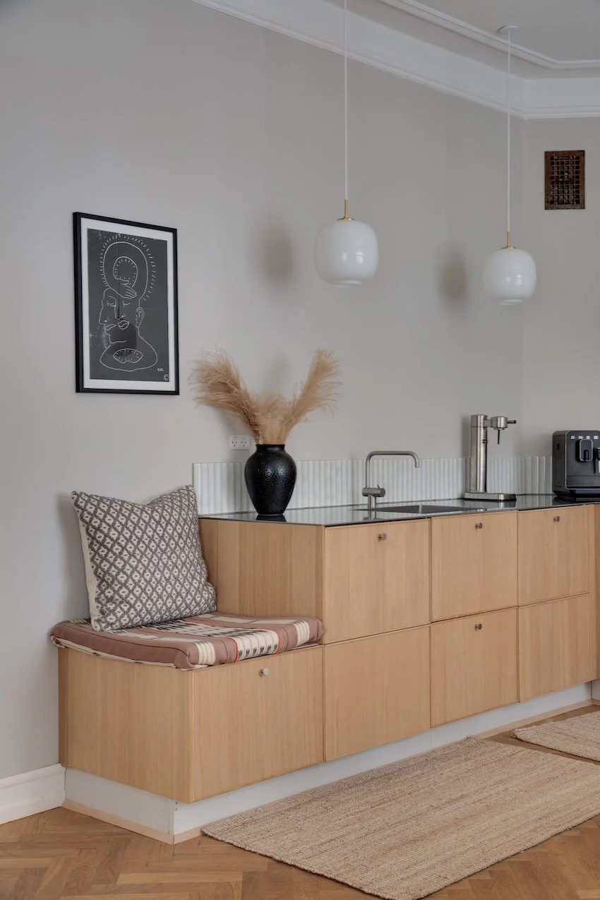 I disse elegante 118 kvm, får du to store stuer en-suite, hvor af den ene har et stort stilrent køkken med træfronter og bordplade i stål. En høj fransk dør forbinder de to stuer, så det føles som et kæmpe køkken / alrum, hvor hele familien kan samles. Mod gården ligger tre rolige soveværelser, samt et nyrenoveret badeværelse med vindue. På gården har Københavns kommune givet en gave, en dejlig fælles gårdhave med masser af grøn beplantning og hyggelige opholdsarealer. Anlægsarbejdet har planlagt start i 2025.