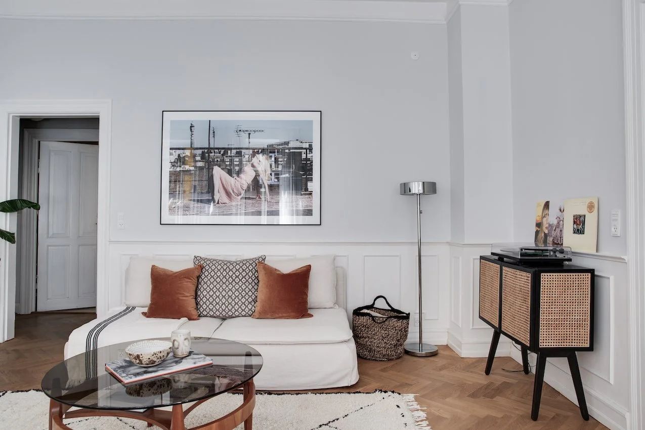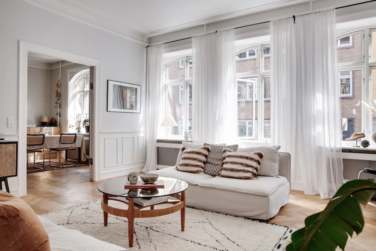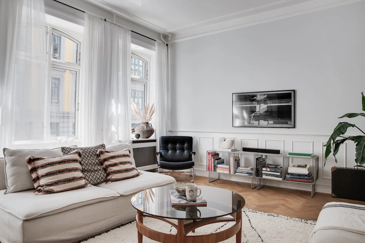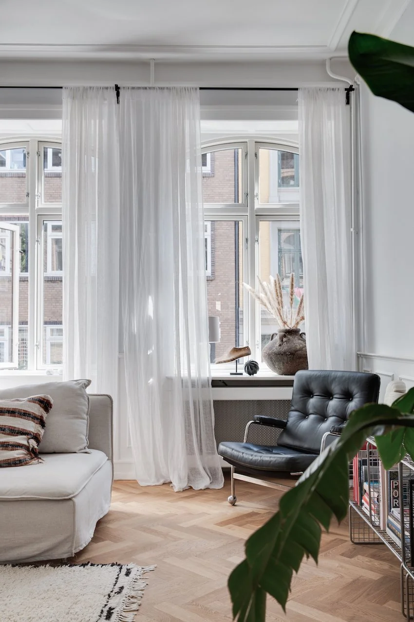Lejligheden er renoveret med en sofistikeret æstetik der fremhæver og bevarer hjemmets bedste kvaliteter. Her er det lykkedes med at kombinere lejlighedens storbysjæl, med fashionabel funktionalitet. Værelserne har en imponerende loftshøjde, ny sildebensparket, og de store vinduer sikrer smukt og naturligt dagslys.
