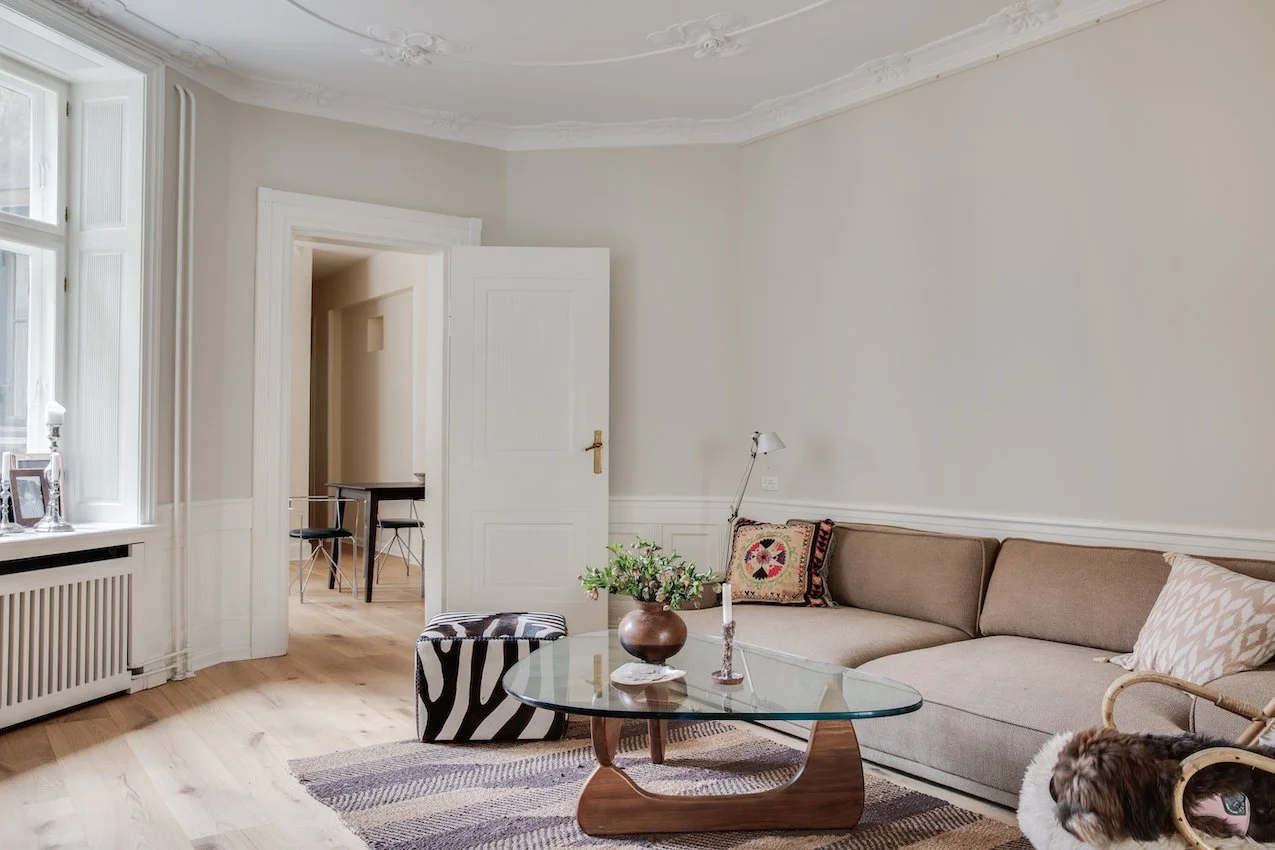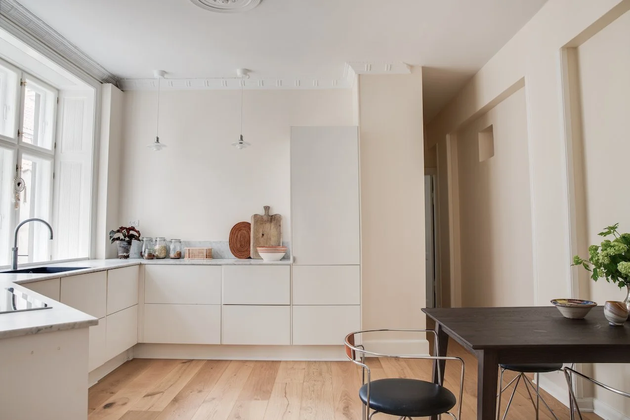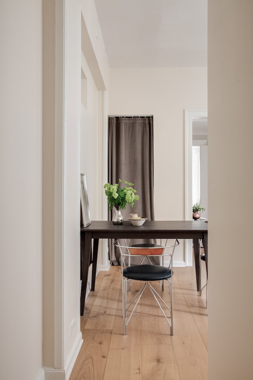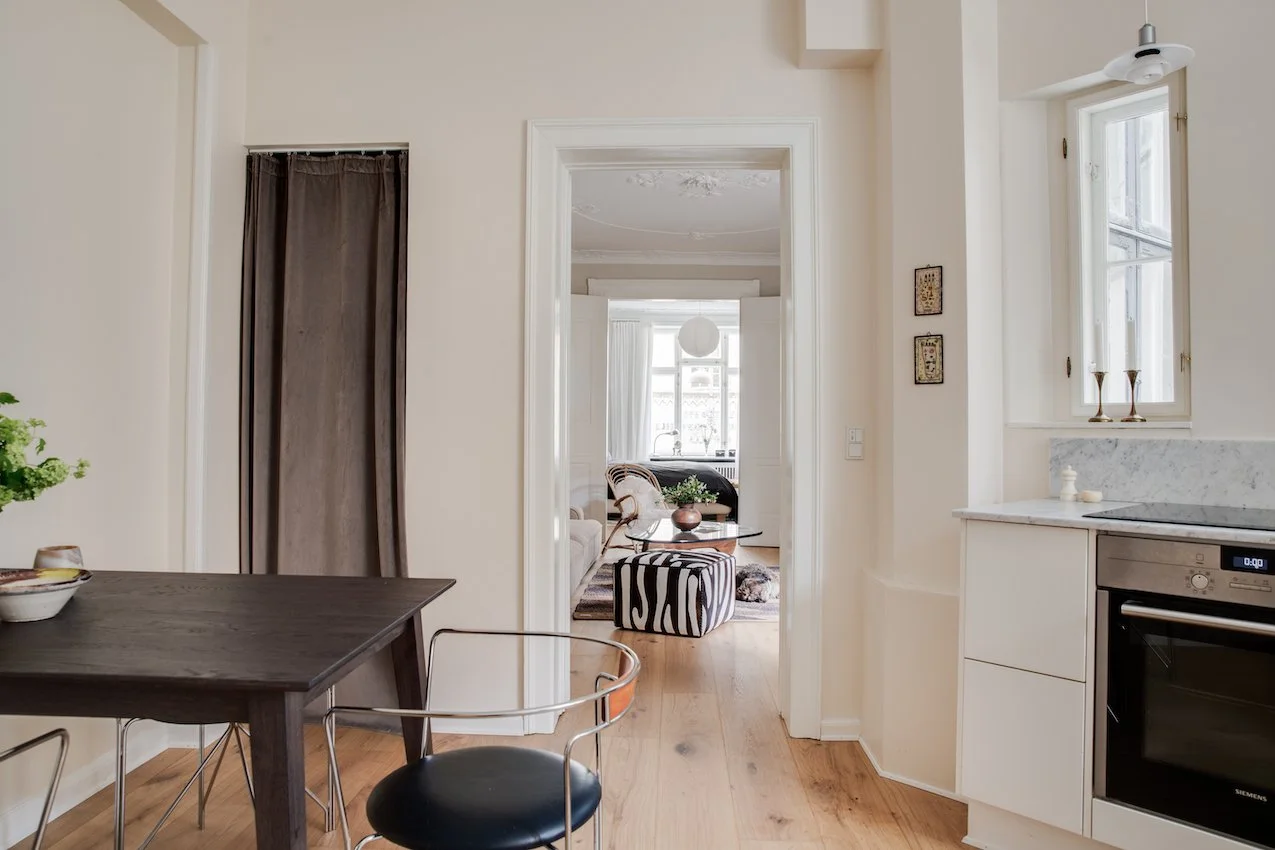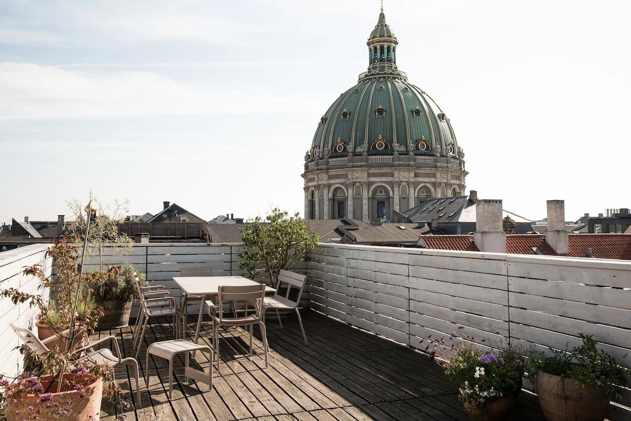 Velkommen til Hindegade og Københavns mest eksklusive kvarter, Frederiksstaden. En smuk smaragdgrøn port, byder dig velkommen til nr.5 og denne klassiske ejendom fra 1901. Her venter en stemningsfuld og personlig herskabslejlighed på 114 kvm, med en enestående udsigt til Marmorkirken fra ejendommens exceptionelle tagterrasse. Lejligheden møder dig med en perfekt kombination af parisisk atmosfære og nutidig bekvemmelighed. De imponerende velholdte og originale detaljer går hånd i hånd med en moderne og stilsikker renovering. Hjemmets planløsning har en unik charme og den udnytter smukt alle kvadratmeter. De fire højloftede værelser kan indrettes lige efter dine behov. Lejligheden er for eksempel nu et hjem med tre smukke soveværelser, et luksuriøst badeværelse, samt et socialt samlingspunkt i midten, en hyggestue og et stort og lyst køkken med spiseplads. Med Hindegades centrale beliggenhed mellem Store Kongensgade og Borgergade, er du nabo til Frederiksstadens majestætiske rokokobygninger, og Nyboders karakteristiske gule rækkehuse. Du er desuden en del af det pulserende byliv og kan vælge og vrage mellem de bedste restauranter, butikker og museer. Metrostationen ved Marmorkirken, tager dig hurtigt rundt til resten af byen.