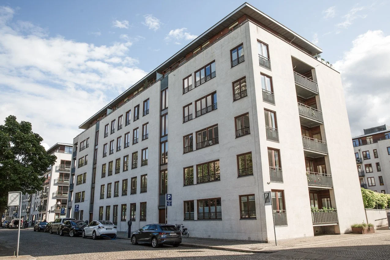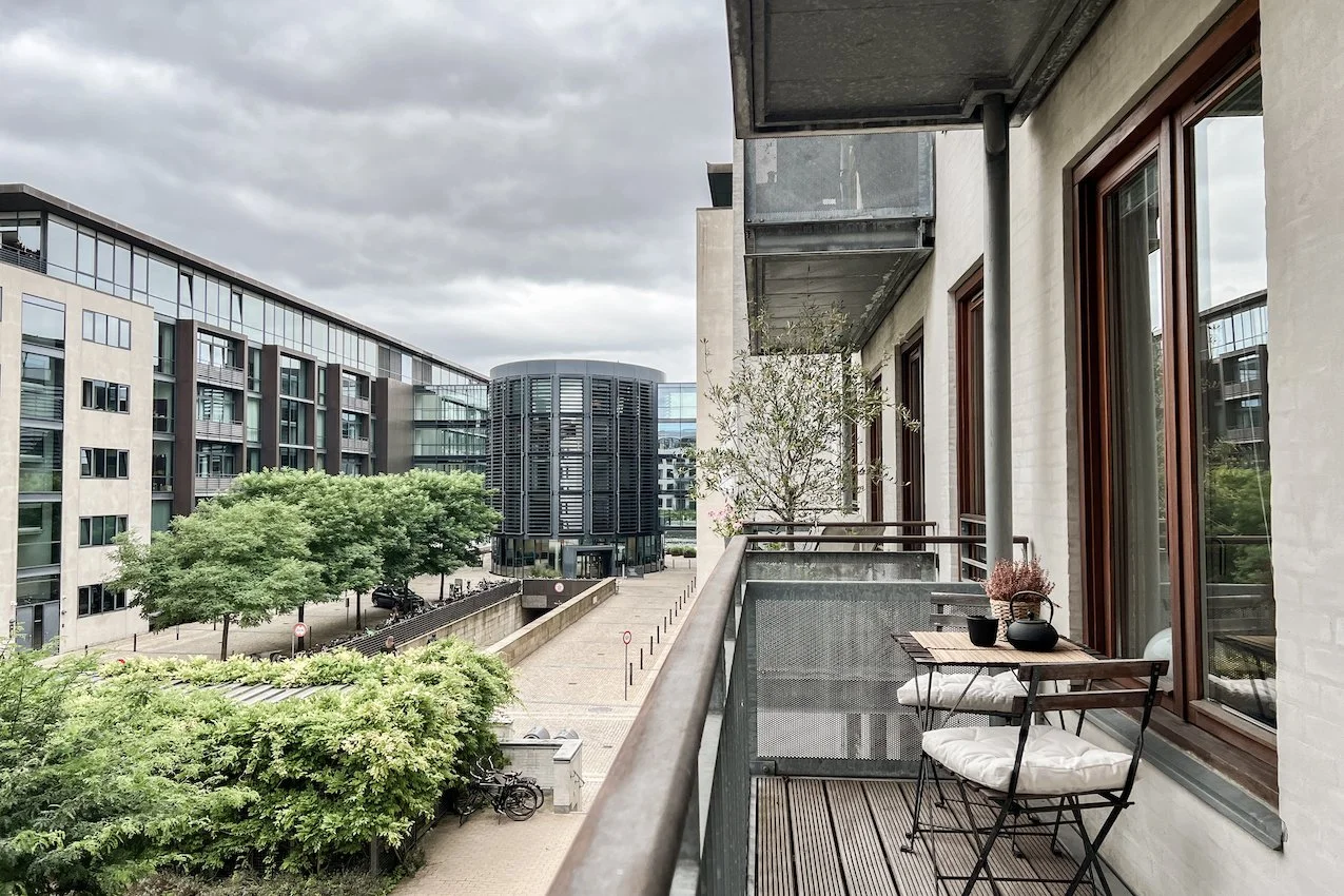 På den eftertragtede beliggenhed Christiansbro, mellem Knippelsbro og Christianshavns Kanal, ligger den elegante Elefantens Gård. Den blev tegnet af Mangor & Nagel Arkitektfirma i 2003, og i denne attraktive ejendom finder du en behagelig og moderne lejlighed med både elevator og altan. De 109 kvm er perfekt fordelt på et åbent køkken alrum, samt to dejlige soveværelser. Rummene er lyse og nemme at sætte sit eget præg på, enten du er til stramt og minimalistisk, eller til farve og form. Indenfor døren er stemningen rolig og privat, og du glemmer hurtigt at du faktisk bor midt i København. Elefantens gård har udsigt over både parken ved Christians Kirke, og ejendommens store og grønne fælles arealer. Christiansbro er en ny bydel på Christianshavn, hvor kanalens beroligende klukkende er en del af hverdagen. I kvarteret finder du Cirkelbroen, og ved Torvegade ligger caféerne og butikkerne side om side.