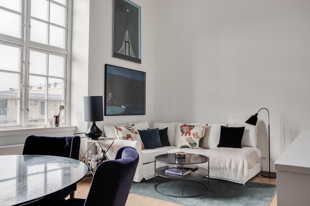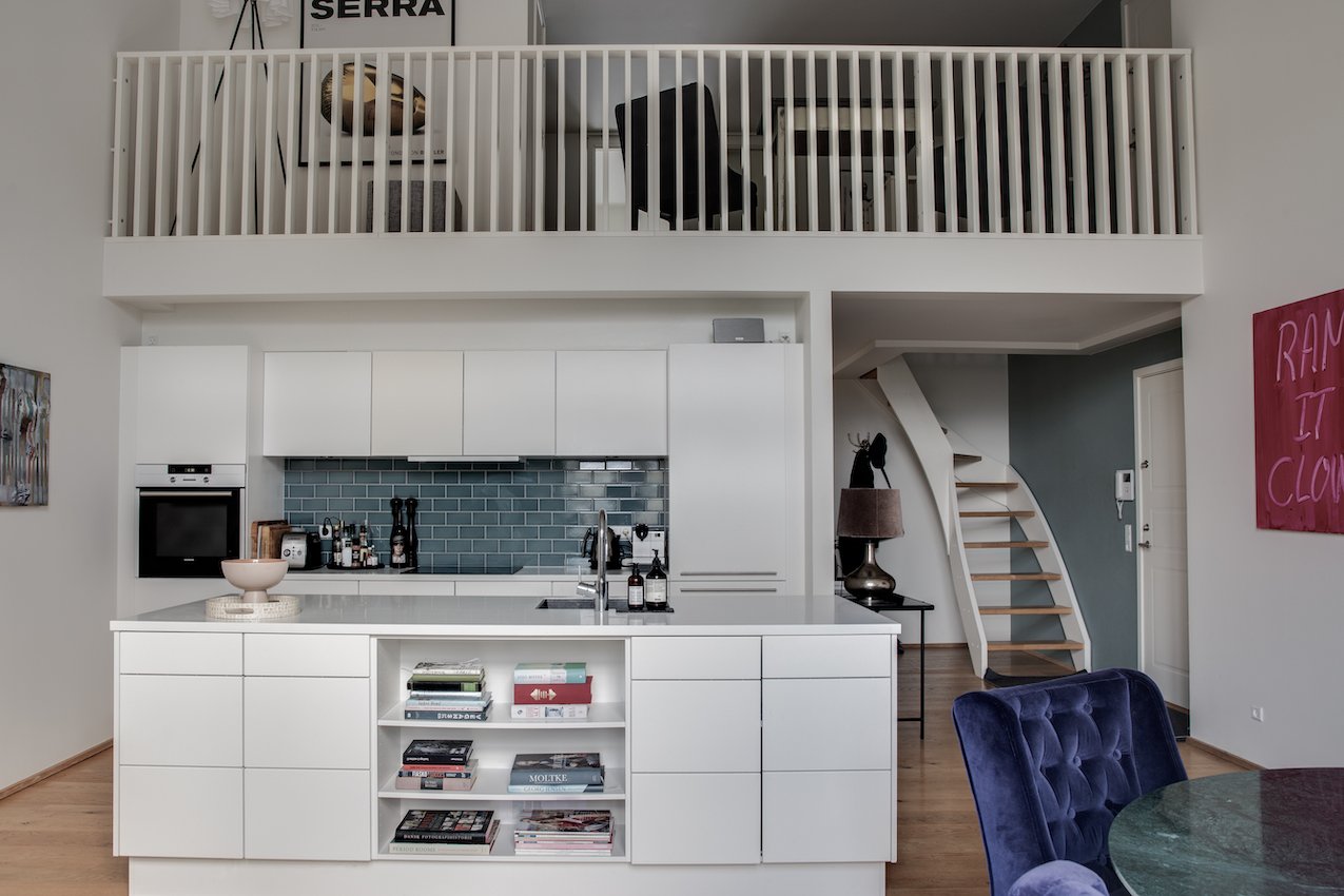 Bag Salomon Palæs storslåede facade, gemmer sig en hel verden af mystik og spændende historier, fra orkestrer på hemmelige etager, til biografgæster og fortrolige loge ritualer. Denne bevaringsværdige og markante bygning blev opført i 1867 og tegnet for Den Danske Frimurerorden. Endnu står den lige så stolt, på bedste beliggenhed midt i det indre København, og indenfor venter denne nyrenoverede og eksklusive lejlighed i to etager. Her er den historiske sjæl blevet bevaret og sammen med topmoderne rene linjer, dannes et helt særligt og unikt hjem på 133 kvm. Så snart du træder indenfor, mødes du af hjemmets unikke stil og planløsning. Entréen glider naturligt sammen med det åbne køkken/alrum der imponerer med sin fantastiske loftshøjde og behagelige lysindfald. På stueetagen findes der også et moderne badeværelse, gæstetoilet, samt to højloftede soveværelser, hvoraf den ene har udgang til en skøn terrasse. Ligesom husets historie byder også denne lejlighed på overraskelser. Fra entréen fører en trappe op til en charmerende indskudt etage. Herfra kan du nyde udsigten over den nederste etage. Det åbne og spændende værelse har plads til både kontorhjørne og hyggestue. Velkommen til et hjem med et originalt look og en unik historie. Lejligheden ligger i hjertet af Frederiksstaden, og inden for gåafstand venter Marmorkirken, de trendy restauranter i Nyboderkvarteret, Kongens Have, samt butikkerne omkring Bredgade og Store Kongensgade.