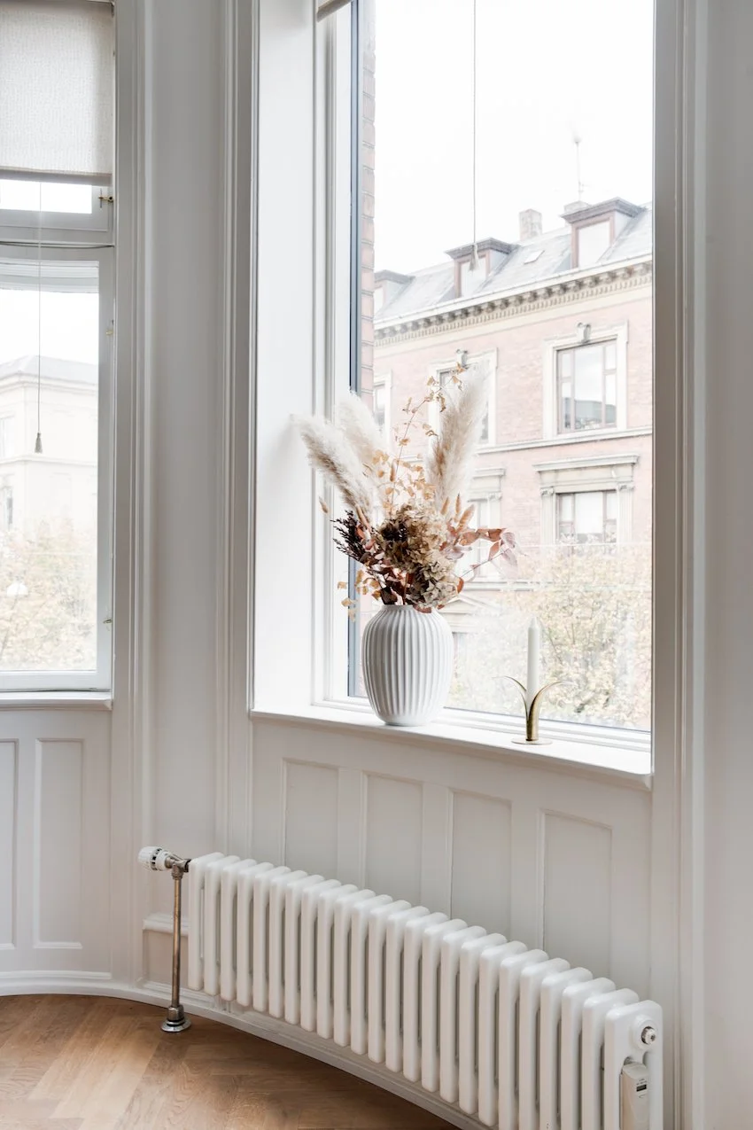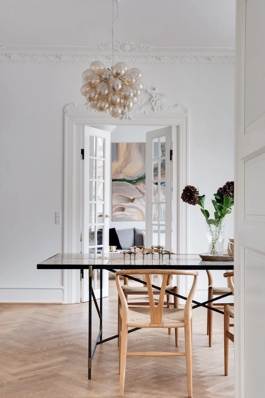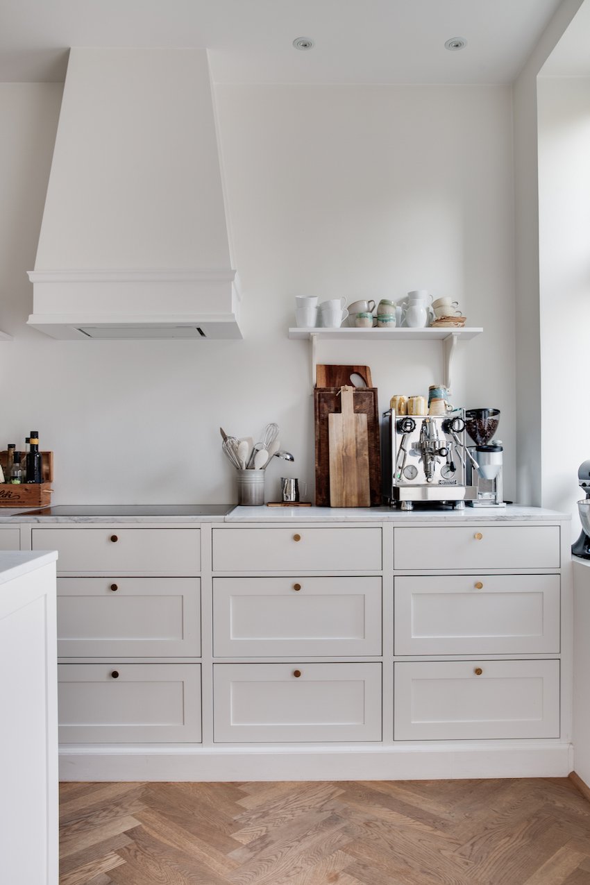 Lejlighedens 112 kvm starter i en indbydende entré der fører dig videre ind til de smukt istandsatte værelser. Her vil du opleve det særlige møde mellem klassisk herskabelighed og nordisk æstetik. Værelserne er blevet nænsomt renoveret, og med en stærk sans for ejendommens historie. Her er anvendt materialer i høj kvalitet der fremhæver og forstærker de originale detaljer. Den fabelagtige stukkatur og de dekorative fyldningsdøre, har fået selskab af flot sildebensparket i egetræ, eksklusive fliser og vask fra Aquadomo, armaturer og Quooker i messing, hvidevarer fra Miele, samt et lækkert snedkerkøkken fra Handcrafted Interior med marmor bordplade.