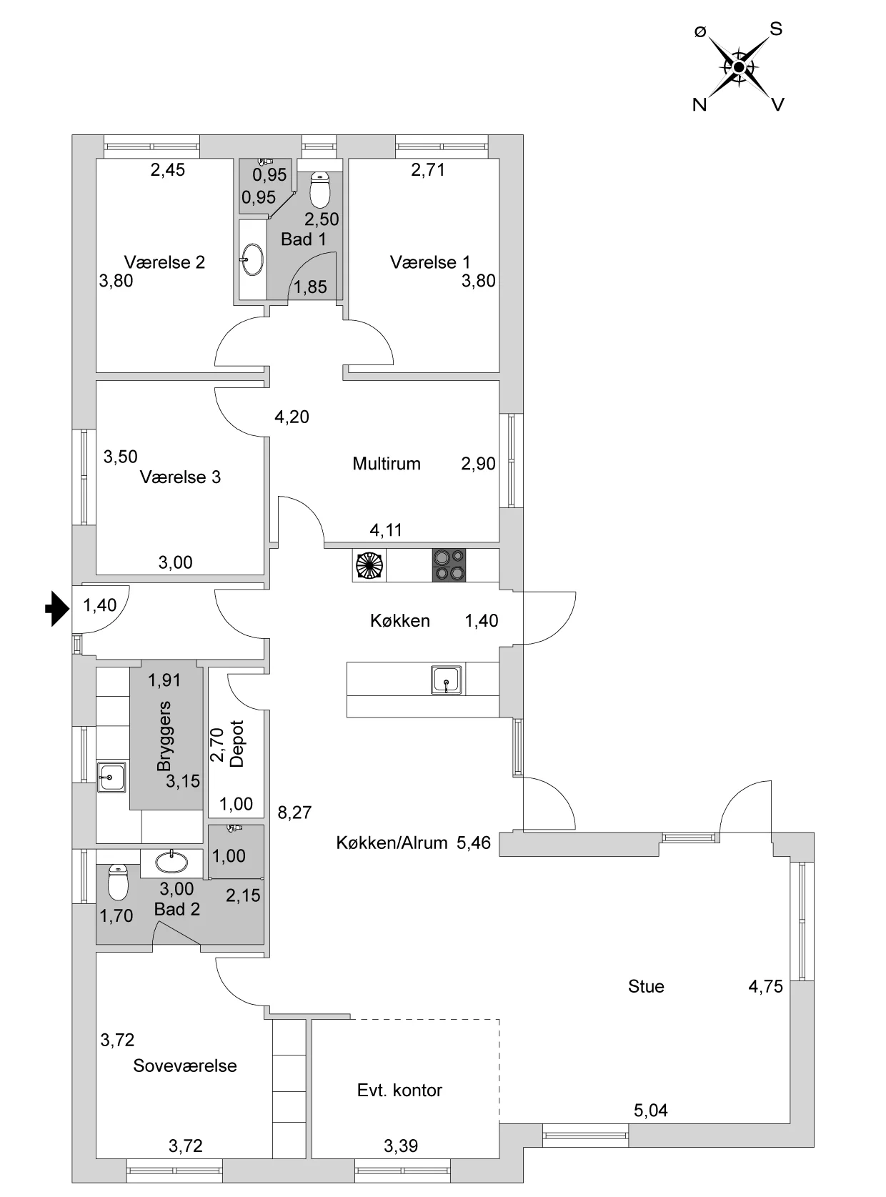 | Soveværelser | 4 (mulighed for 6) |