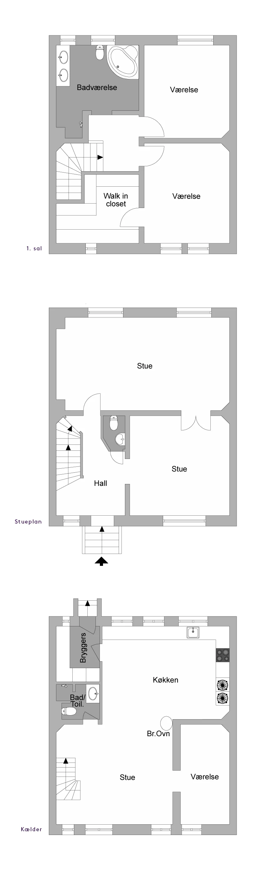276 smukke etagemeter fordelt på de 3 etager. Med inspiration fra funktionen i engelske town-houses, hvor man havde køkken, bryggers og andre servicefunktioner i den højtliggende kælder, har man i dag indrettet et stort køkken-alrum samt gæste-værelse og tilhørende gæstebadeværelse. I denne del af huset har man indgang fra forhaven samt udgang til den store og velanlagte fælles gårdhave. Den høje stueetage er fordelt på to store stuer, hovedentré og et gæstetoilet. Den smukke snoede trappe leder op til 1. salen, hvor man finder det store master soveværelse med tilhørende walk-in closet. På etagen er der ligeledes rummeligt autentisk master badeværelse og yderligere et lyst gæsteværelse mod gårdhaven.