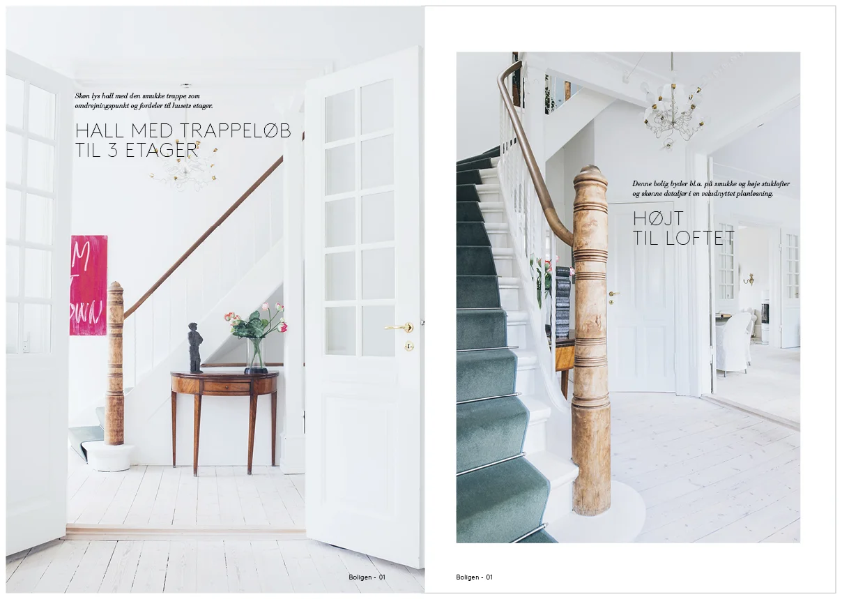 Stilen er romantisk med smukke høje stuklofter, lyse trægulve og gennemgående detaljer som giver huset sjæl.
