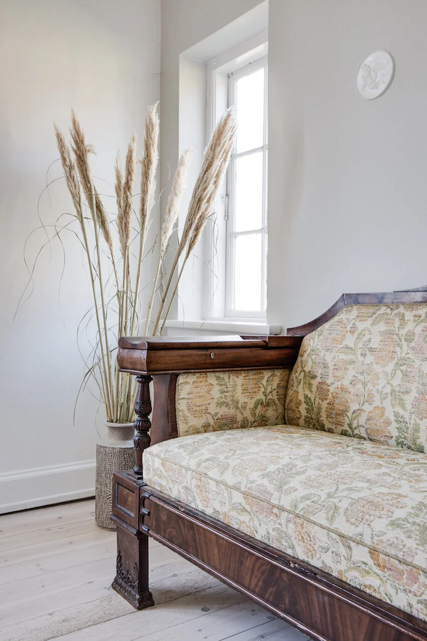 Vel inde mødes du af lyse og højloftede rum som emmer af historisk charme og klassisk elegance. Hjemmet er både stilfuldt og individuelt, med smukke indslag som en svensk kakkelovn, synlige bjælker og lyse afhøvlede plankegulve. I løbet af 2018 -2019 er huset blevet smagfuldt moderniseret med respekt for husets arkitektoniske stil og i skøn harmoni med de oprindelige detaljer.