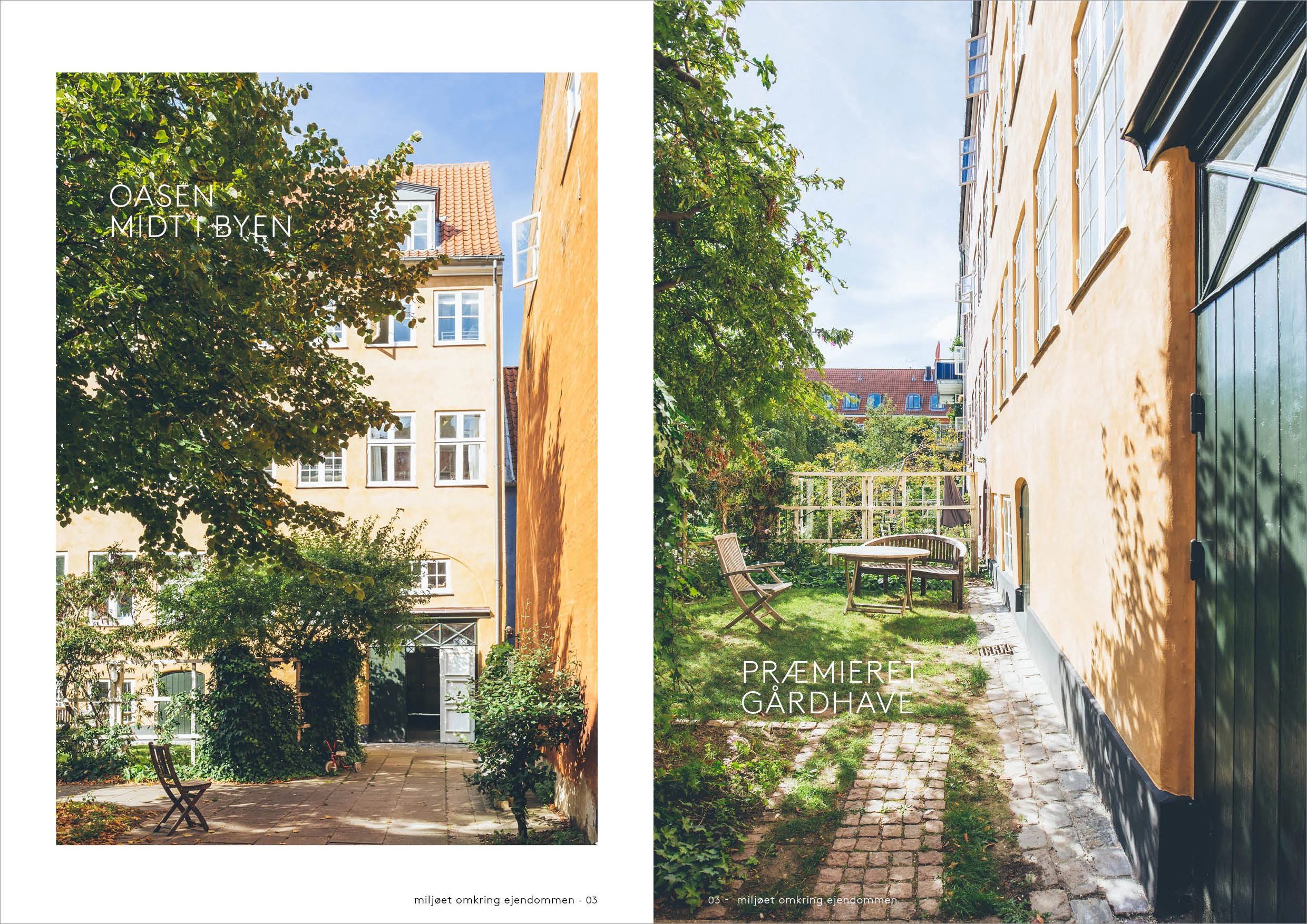 Den fortryllende gårdhave i midten af karreen tilfører denne bolig noget helt specielt, og med byen som nabo får man her den ideele kombination af tilbagetrukket ro men i tæt kontakt med gadens liv.