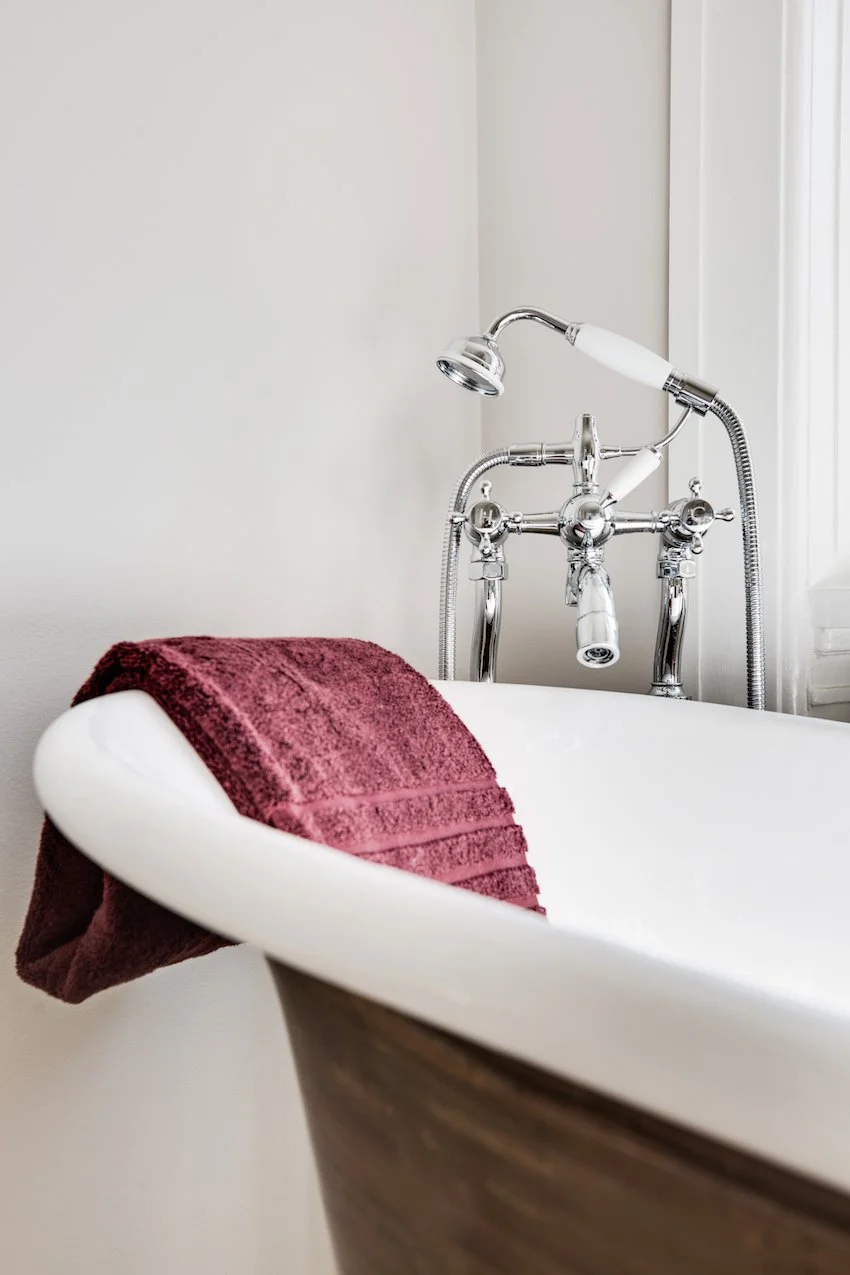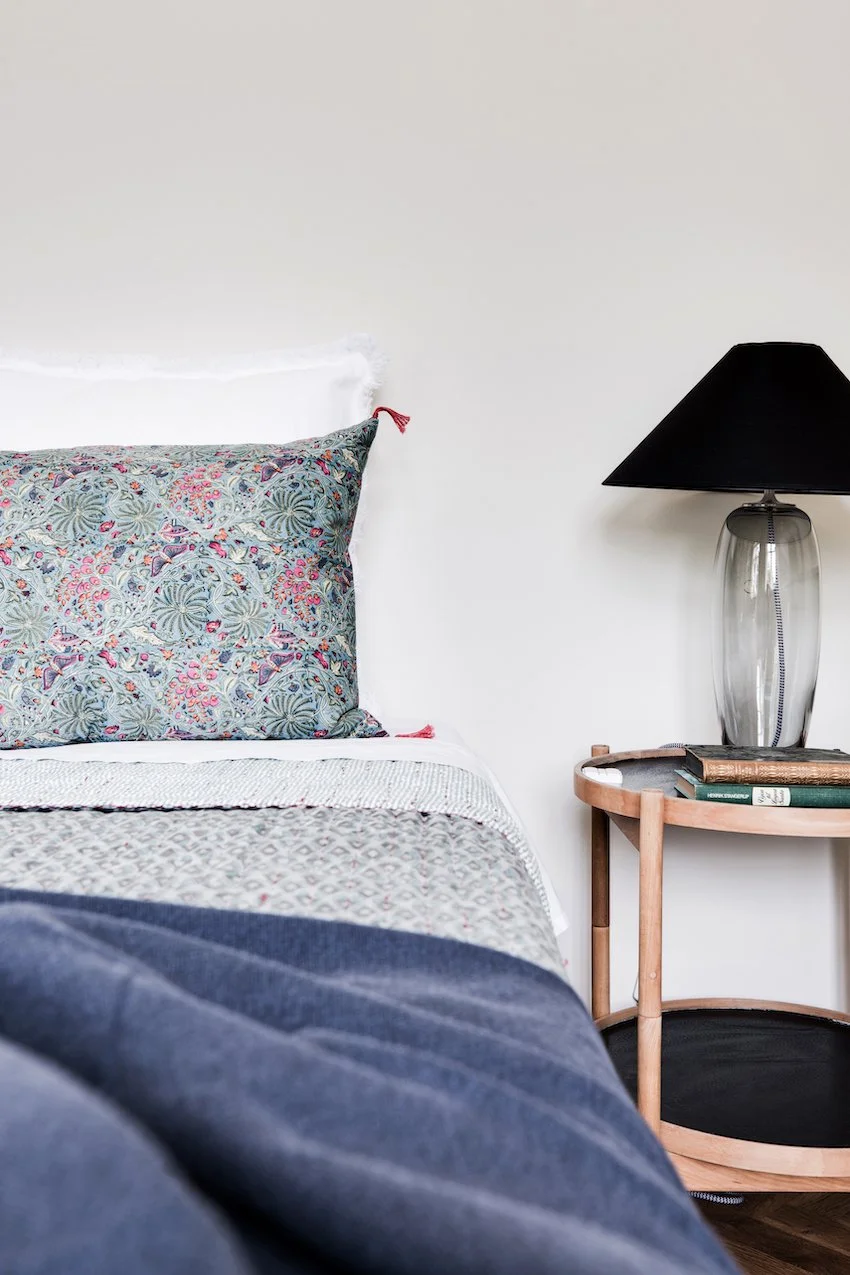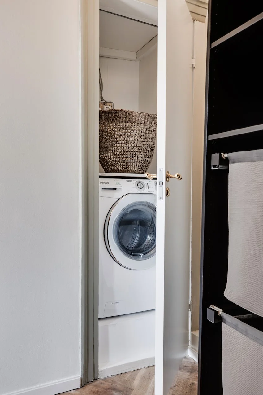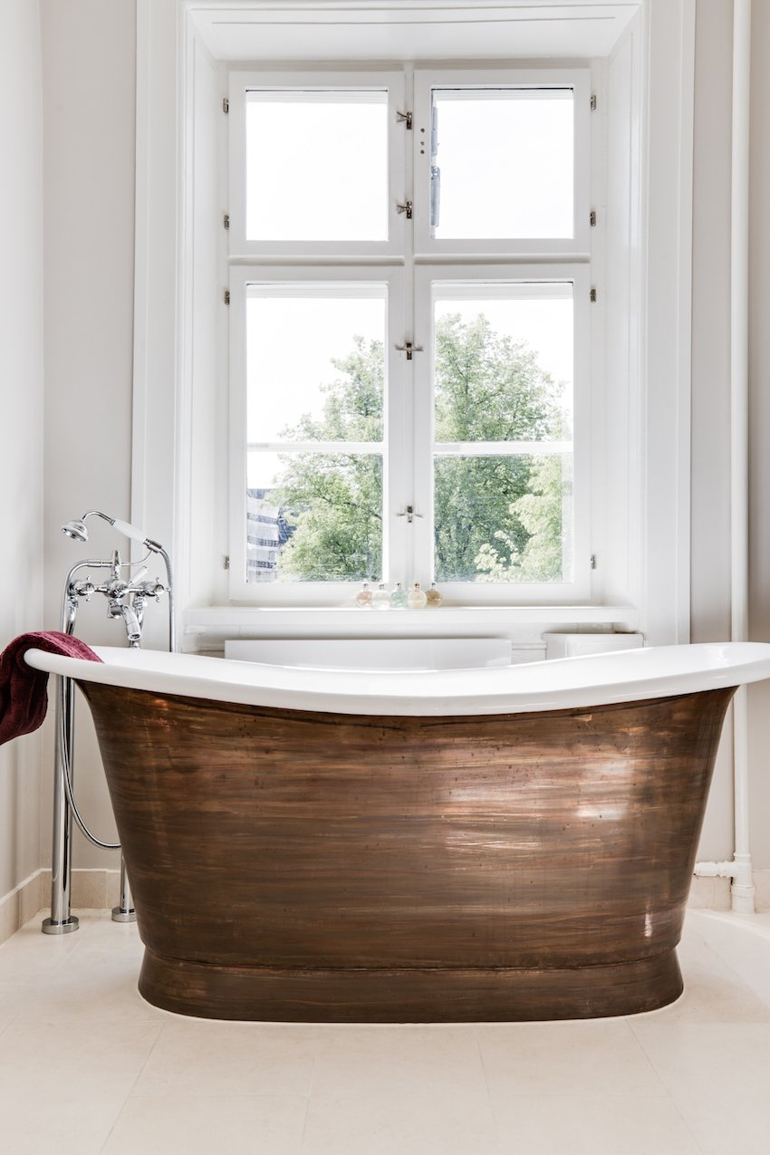 Lejlighedens drømmesoveværelse charmerer med blomstret tapet, og et tilhørende luksuriøst badeværelse. Fra badeværelsets fritstående badekar kan du nyde udsigten over Vor Frue Kirke. I soveværelset er der desuden direkte adgang til en walk-in closet med vaskemaskine.