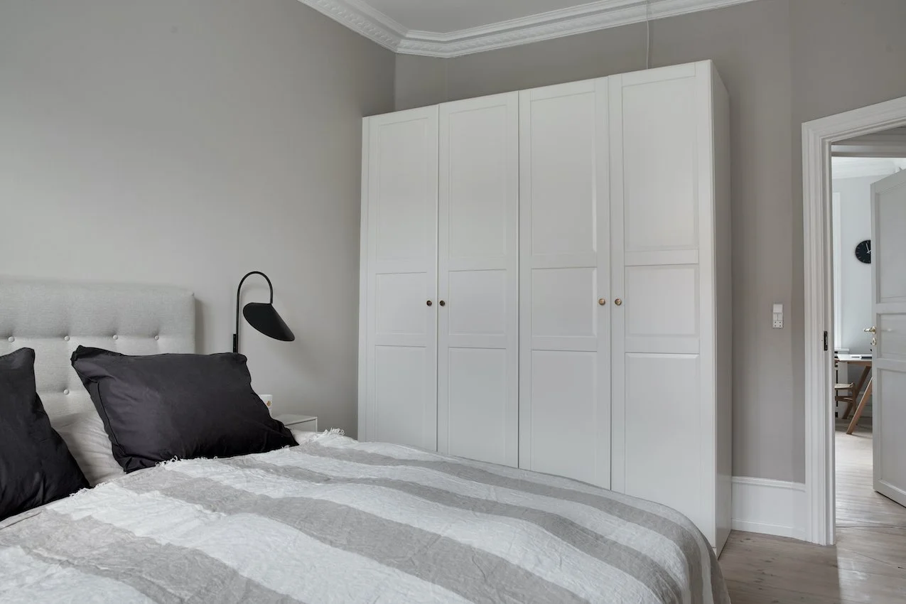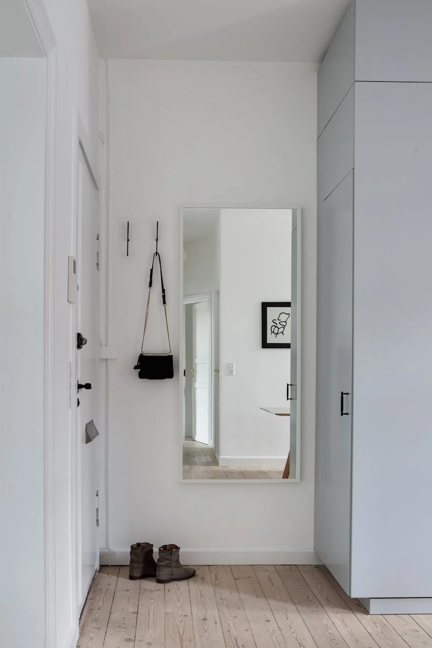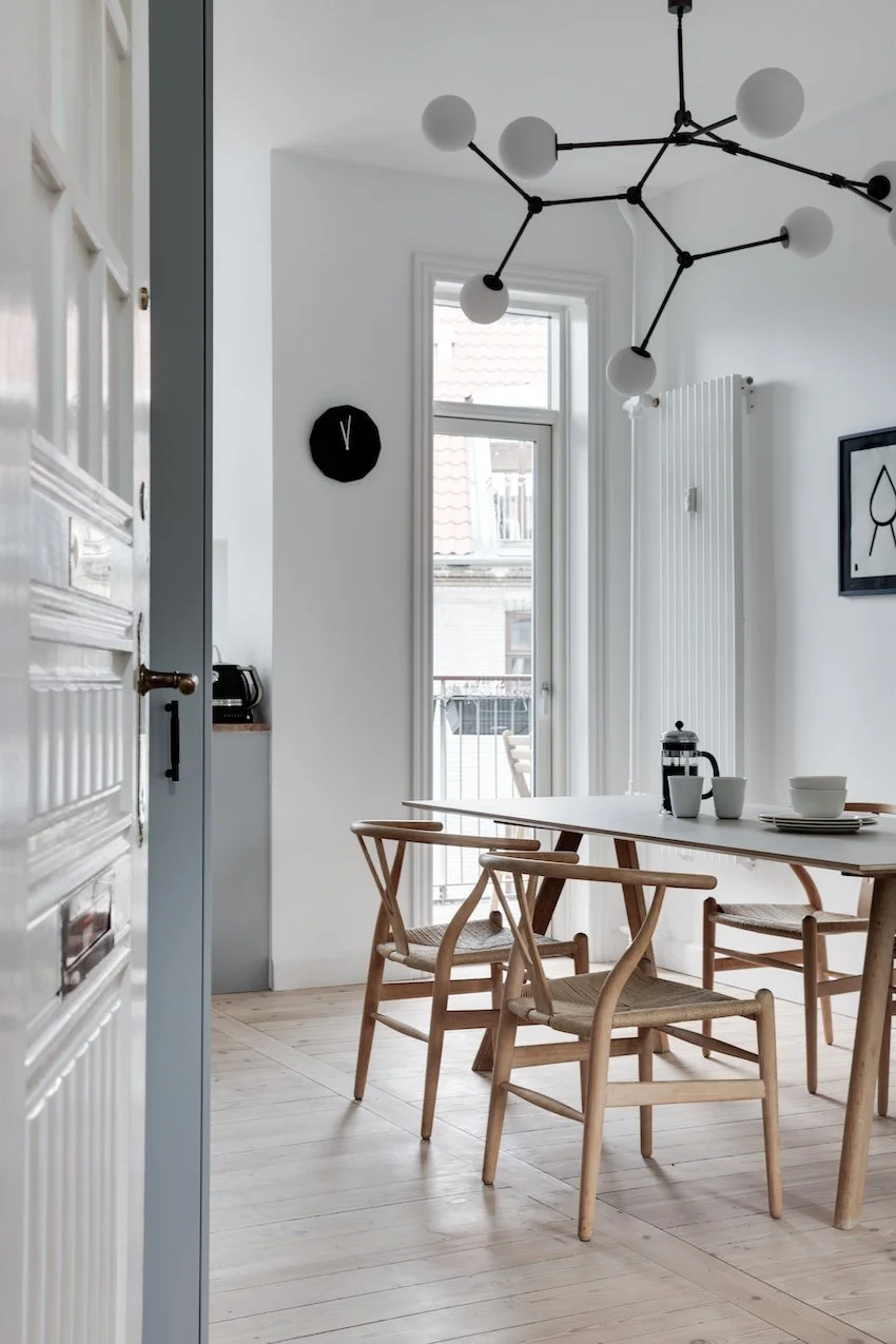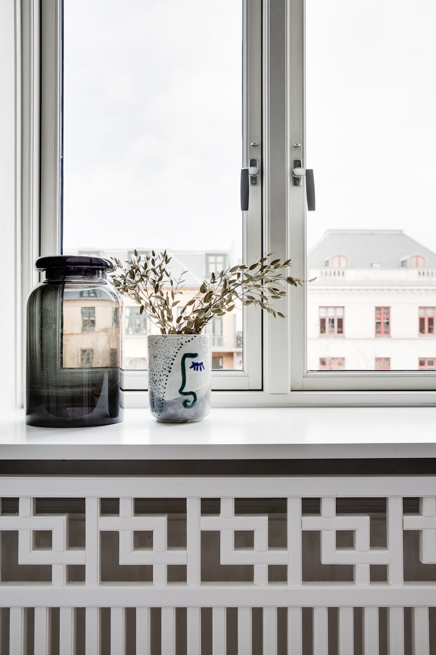 På fjerde sal finder du denne delikate drømmelejlighed. De 97 kvm er smagfuldt istandsat og imponerer med en exceptionel stilfuldhed og en harmonisk stemning. Hvert eneste valg er præget af en stærk æstetisk sans og en kærlighed for lejlighedens herskabelige rammer.