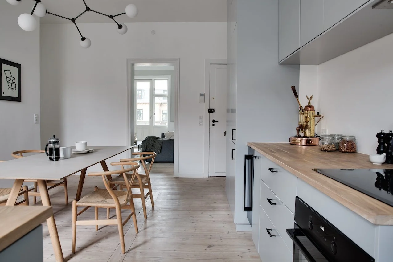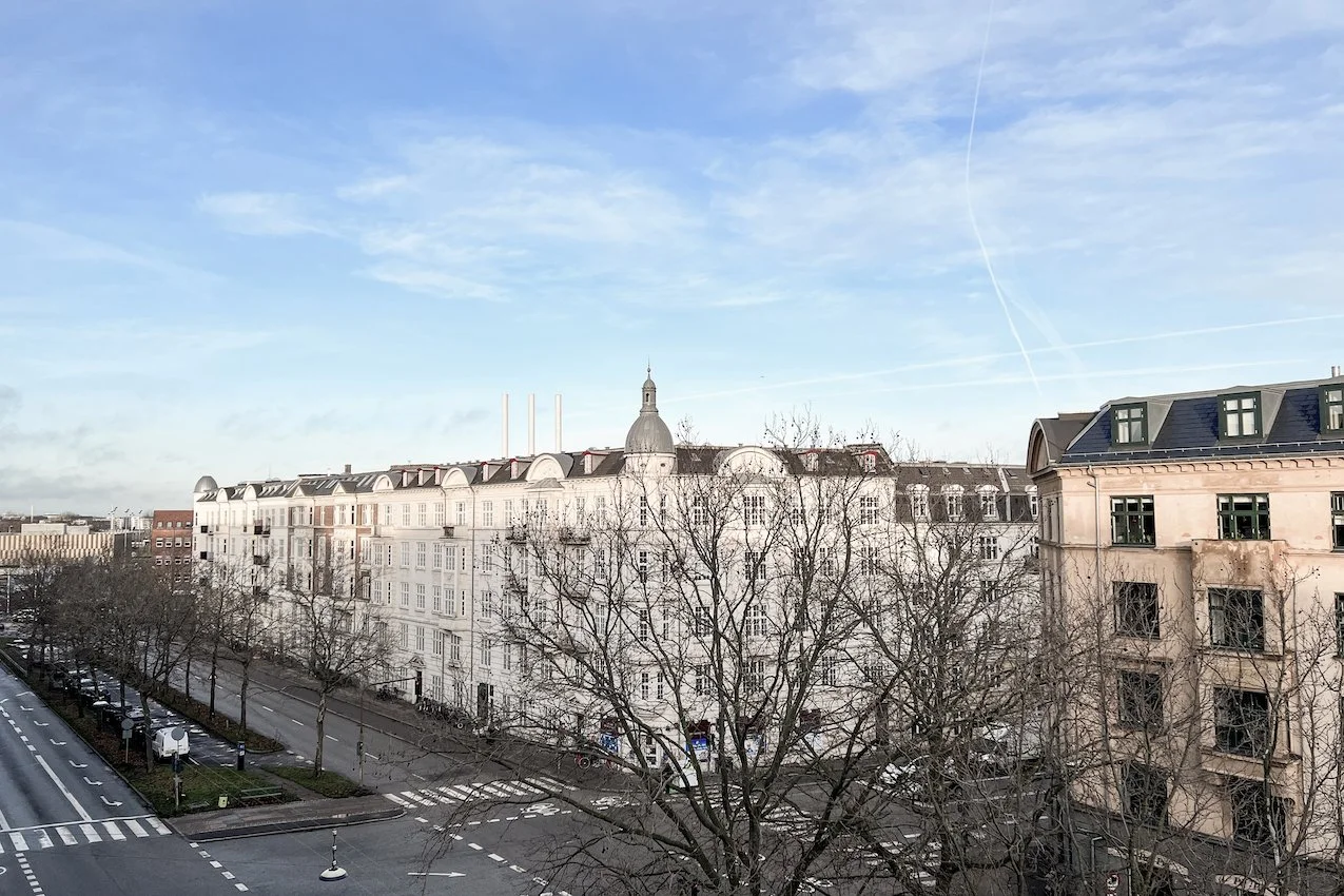 Lejligheden har en misundelsesværdig placering i hjertet af Østerbro, tæt på både hyggeligt byliv og vand. Her kan du slentre ned til dine yndlingsbutikker på Østerbrogade, spise frokost på Bopa Plads, eller springe på Metroen eller S-toget ved Nordhavn Station. Er du til vinterbadning, cykler du bare ned ad Århusgade til Sandkajen i Nordhavn. Det er ikke svært at blive forelsket i denne fashionable lejlighed.